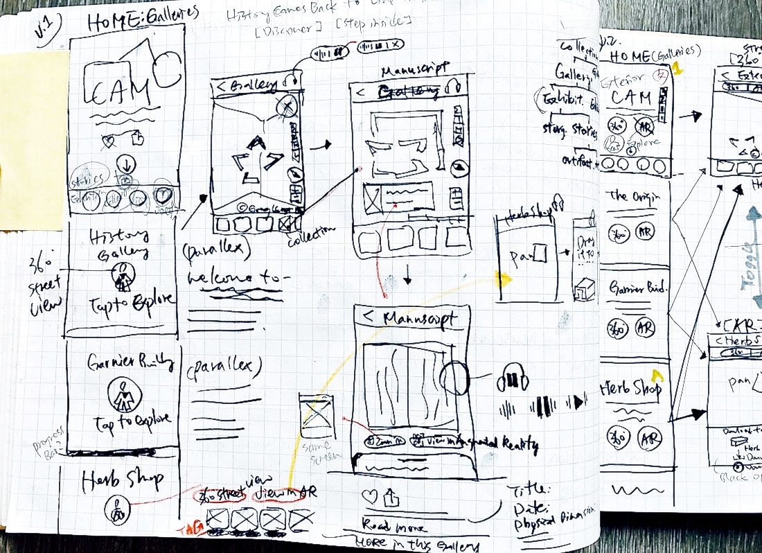 Contents are modularized based on physical exhibitions for easy navigation and a clear mental map. The phone camera can scan real-world space to play with AR hotspots.