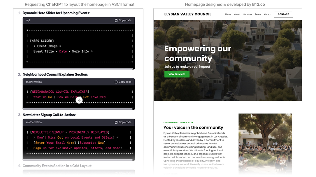 We leveraged AI tools like ChatGPT and B12.co for ideation, using their suggestions to refine our designs and fill gaps in content strategy. AI proved invaluable, especially for creating wireframes and prototypes that mirrored our community-first ethos. This collaboration helped streamline repetitive tasks, giving us more time to focus on creative problem-solving.