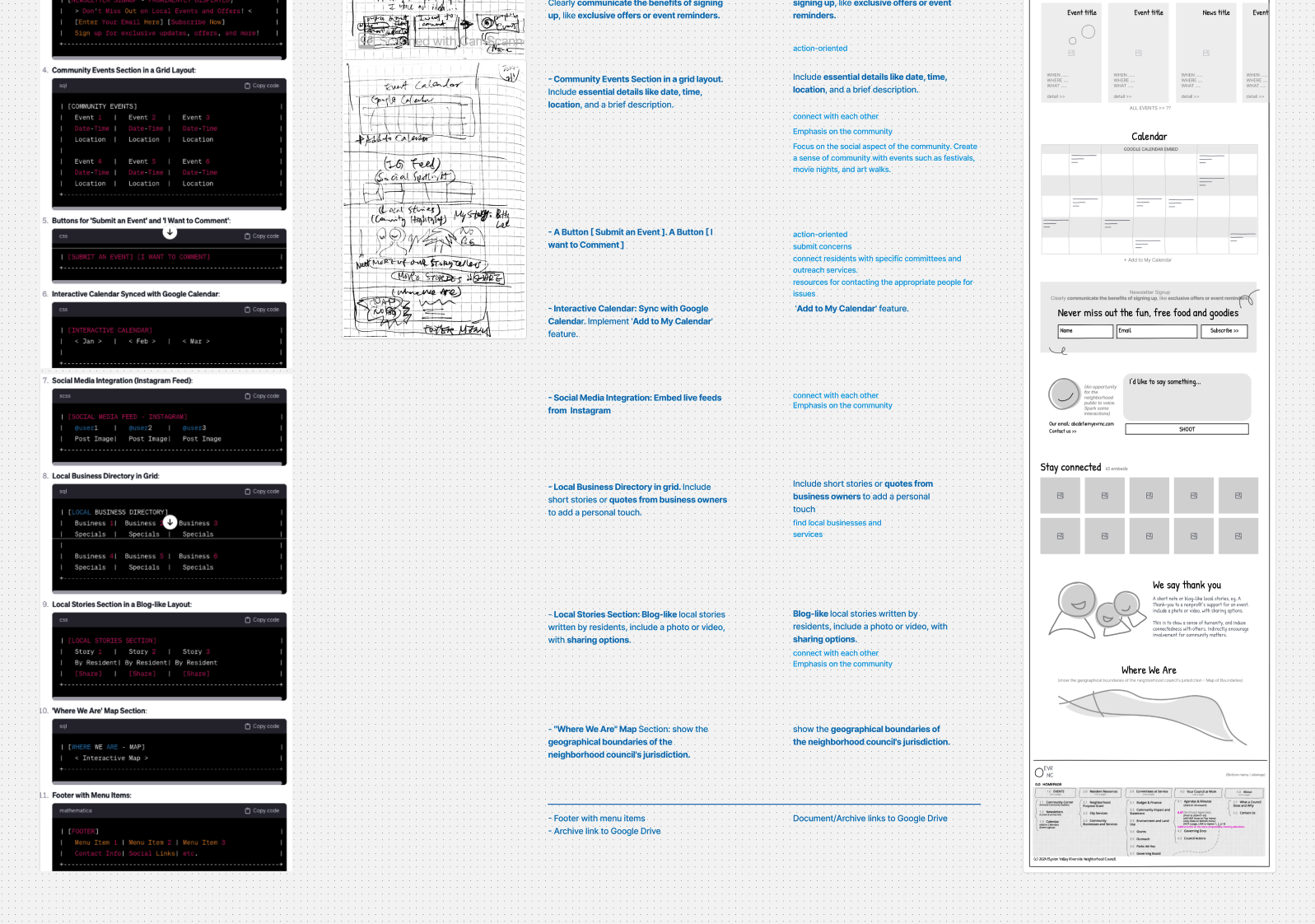 We explored design trends and competitive examples, drawing inspiration from nearby community websites like Los Feliz and United Neighborhoods. We emphasized vibrant imagery and interactive calendars while ensuring our approach was grounded in simplicity. Mobile-friendly layouts and quick-access menus became pivotal features in our mockups.